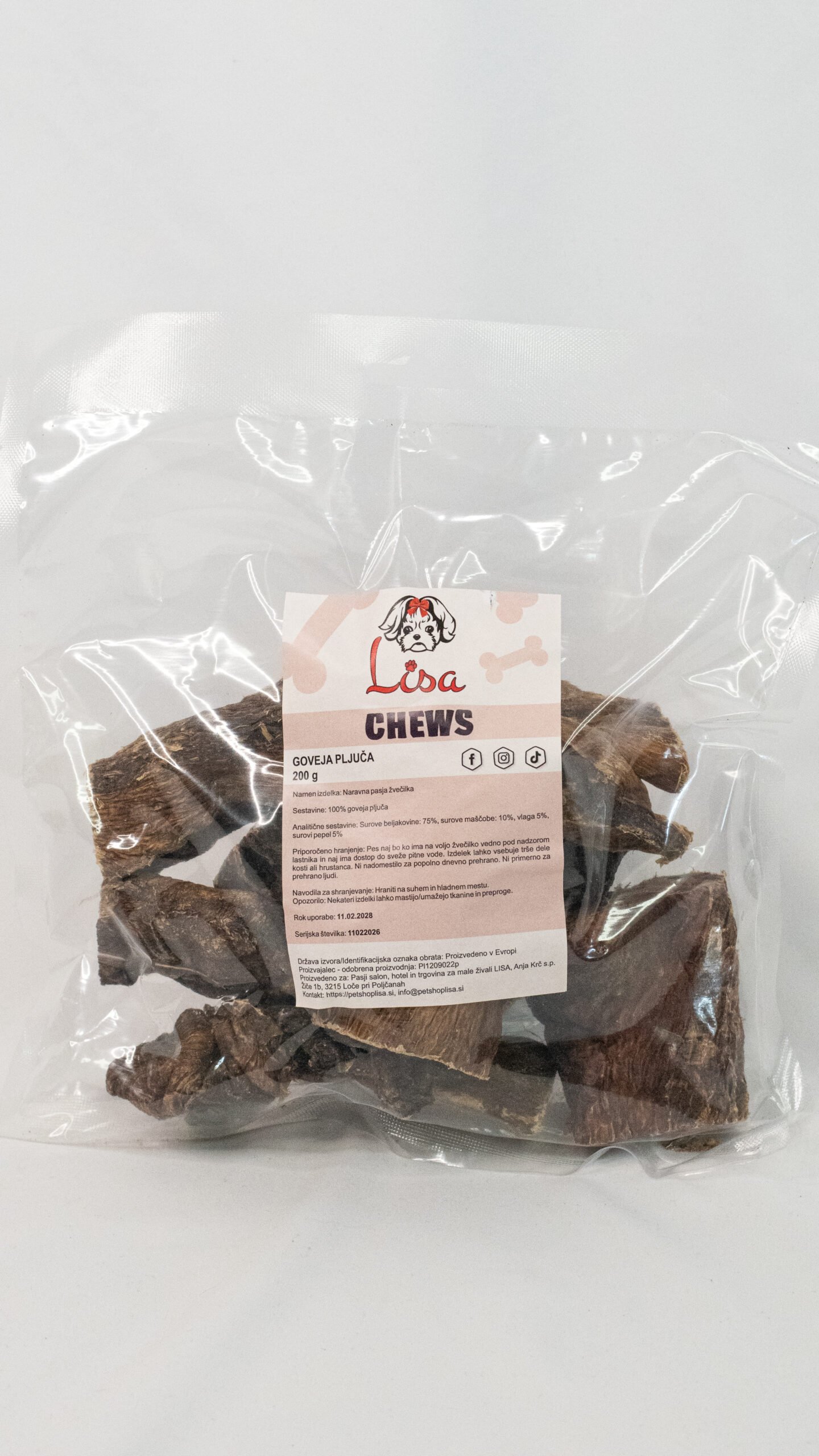 Sušena goveja pljuča so lahki, hrustljavi in zelo okusni naravni priboljški. Zaradi nizke vsebnosti maščob so odlična izbira tudi za pse, ki potrebujejo bolj lahko prebavljivo nagrado. Zaradi mehkejše strukture so popolna izbira za trening ali hitro nagrajevanje.