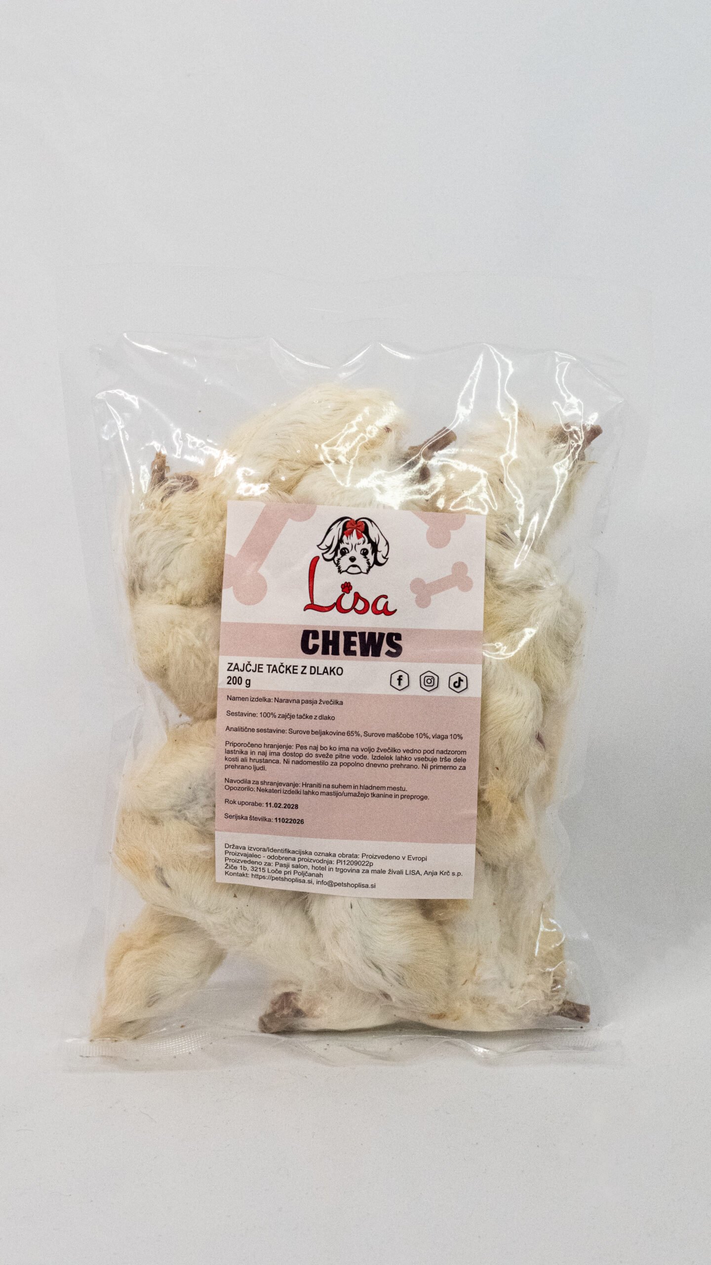 Sestavine: 100% zajčje tačke z dlako