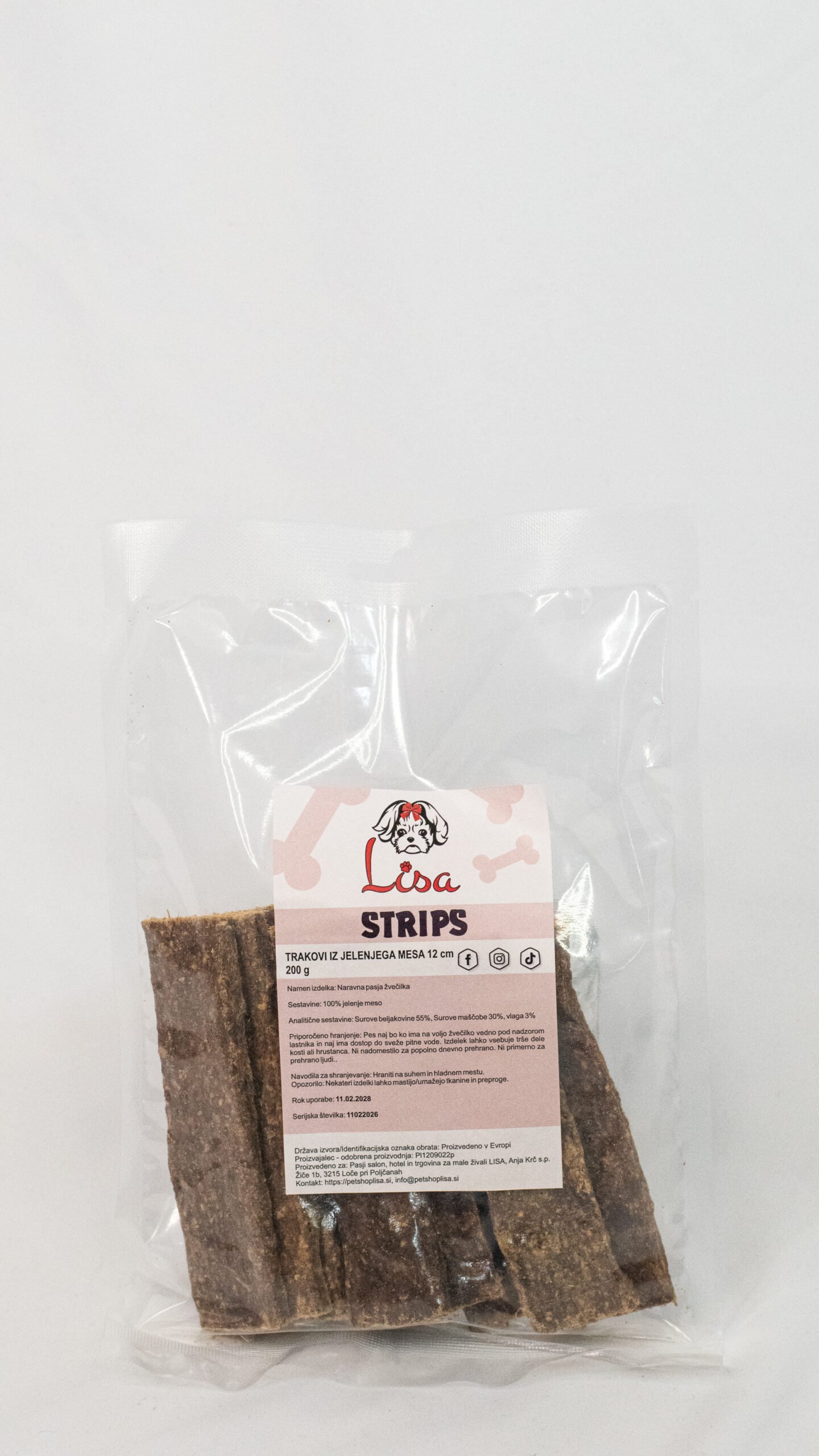 Trakovi iz jelenjega mesa so naravna in aromatična poslastica za vašega psa. So mehkejše strukture, zato jih lahko preprosto nalomite na manjše koščke in uporabite kot nagrado pri treningu ali sprehodu. Divjačina predstavlja manj pogost vir beljakovin in je lahko primerna tudi za pse z občutljivostjo na klasične vrste mesa.
