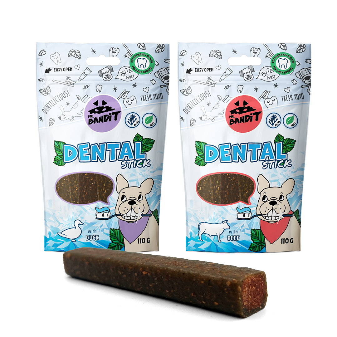 Oblika in sestava nudita podporo mehanskemu čiščenju zob pri psih.