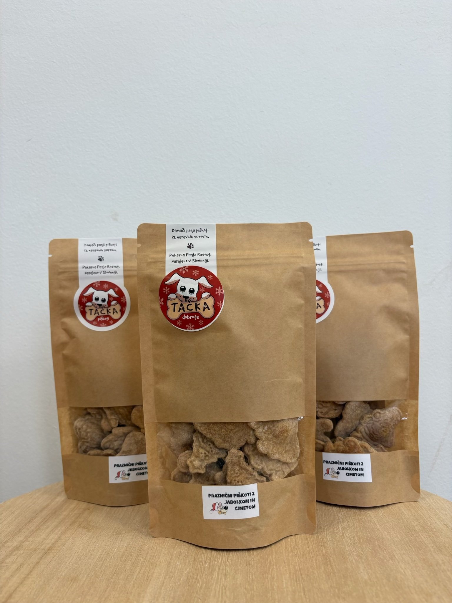Cimet: Cimet ima protivnetne lastnosti, podpira prebavo, deluje antibakterijsko in pomaga uravnavati raven sladkorja v krvi. Rok uporabe: 6 mesecev 100% naravni pasji piškoti Tačka, brez sladkorja ali soli, umetnih bravil in konzervansov. Narejeni z ljubeznijo, s spoštovanjem do naših 🐶.