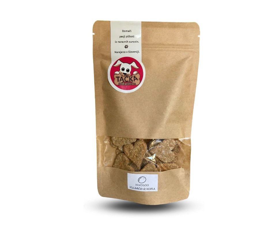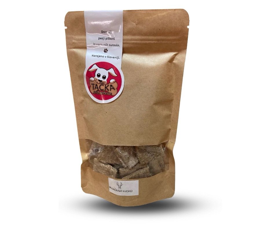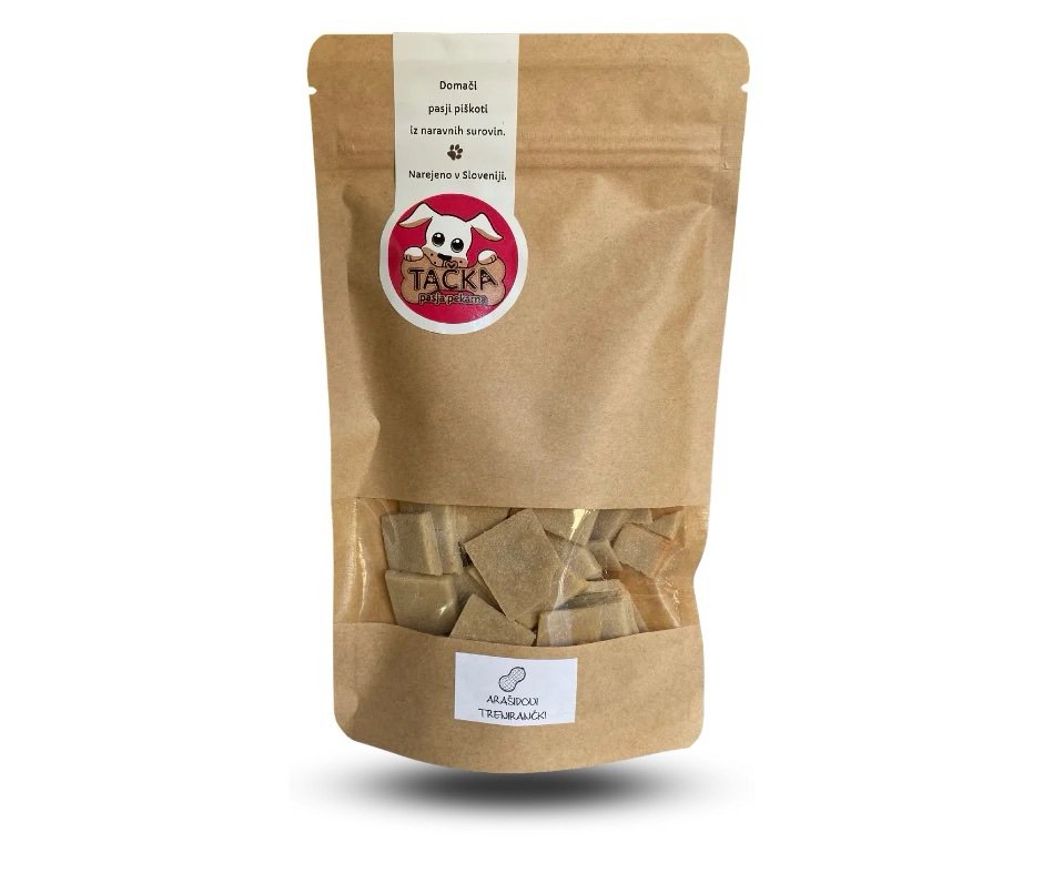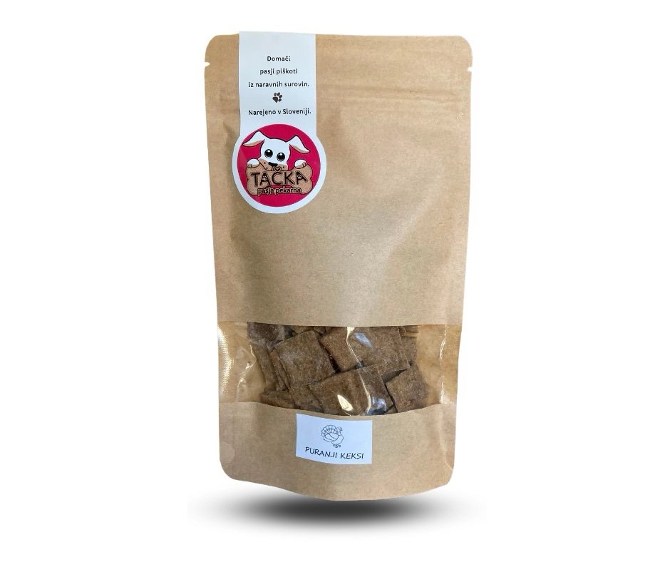 Pasje pekarna Tačka ponuja skrbno izbrane, ročno pečene piškote za pse, narejene iz naravnih in kakovostnih sestavin. Vsak piškot je pripravljen z mislijo na pasje zdravje, dobro počutje in najboljšo možno prebavljivost. Na voljo so v več okusih, zato lahko vsak kuža najde svojega najljubšega.