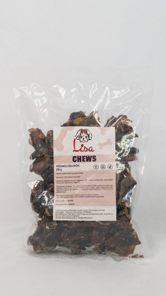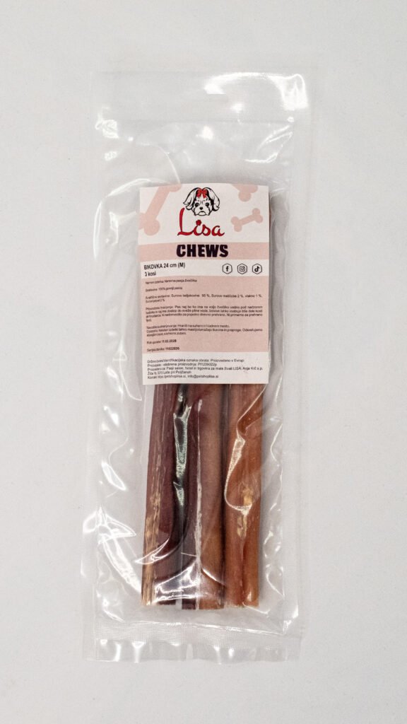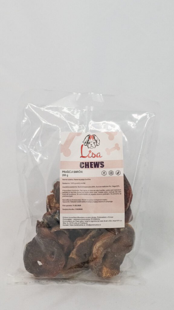 Suhomesnate žvečiljke so naravne pasje poslastice iz sušenega mesa, ki psom nudijo dolgotrajno žvečenje, pomagajo pri čiščenju zob, krepitvi čeljusti in hkrati zadovoljijo njihovo naravno potrebo po grizenju.